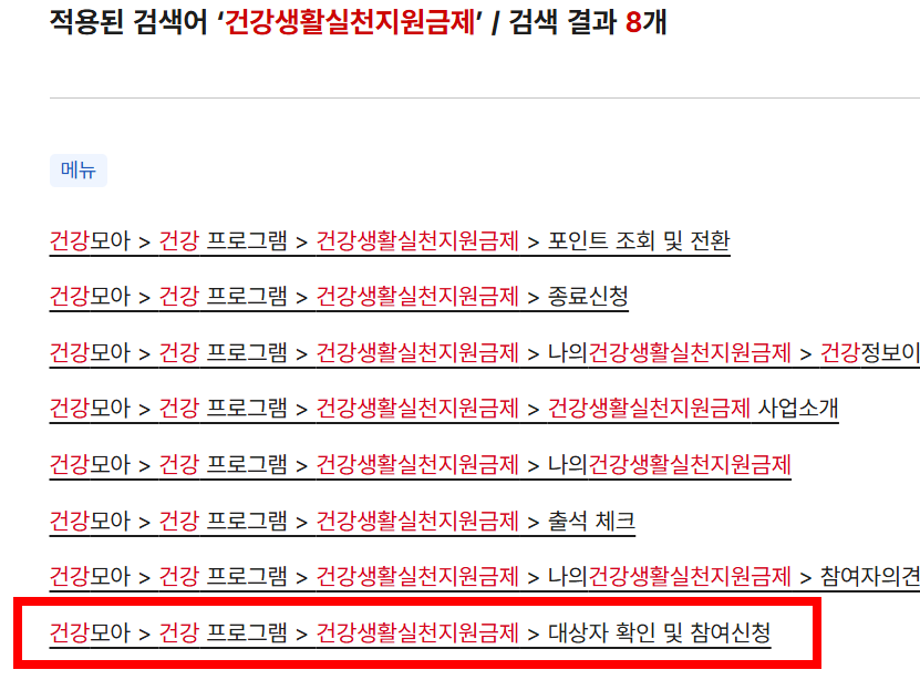 - 로그인 후 “건강생활실천지원금제” 검색 → 신청 메뉴 이동