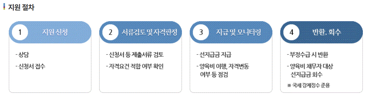 - 양육비 선지급금 이상의 양육비가 이행되면 지급이 중지될 수 있습니다.